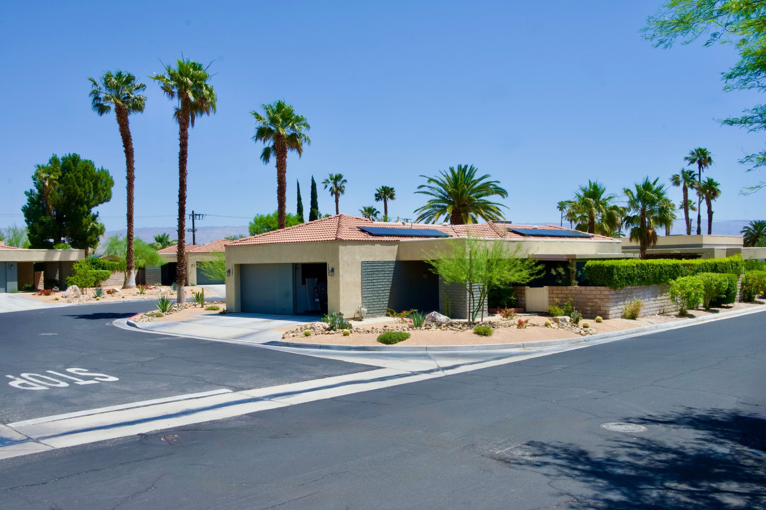 Make your dream a reality! You only live once! Buy in a gated community with lots of resort-style amenities in beautiful Palm Springs! Tired of the Cold? Tired of traffic in the big cities? Palm Springs is a great place to live. Everything is so close: very little traffic, great healthcare services, easy to get around, lots of things to do, a great international airport in less than 15 minutes, and sunny weather all year around. Amazing price for only $298k furnished/turnkey or unfurnished (same price) for a one-level duplex-style condo that does not have a condo above or below you and has a private garage and a private backyard. A bright, 2-bedroom, 2-Bath Large Corner Lot Duplex with beautiful views of the mountains is situated in a well-maintained gated community of Sunrise Palms, just 10 minutes from vibrant downtown Palm Springs with great shops, restaurants, and much more. This 2-bedroom, 2-bathroom duplex offers natural light, privacy, and a very nice layout that truly feels like a home. The master bedroom has an en-suite bathroom, and the second bedroom is currently being used as an office and has a pull-out futon-style sofa for guests. The futon-style sofa in the living room also pulls out to a bed. Solar tubes for natural lighting throughout. This duplex has 2 bathrooms, which is a great upgrade. Many of the duplexes in the community do not have 2 bathrooms. New light oak laminated wood floors throughout. Step into your private backyard oasis, perfect for sun, entertaining, gardening, yoga, reading and enjoying peaceful desert evenings. Artificial grass in the backyard for easy maintenance. One of the 8 pools and 8 spas is around the corner and less than 2 minutes’ walk from the duplex. Leased solar panel with a remaining 15-years and an average monthly cost of $55 to $100 depending on usage. You will save a lot of $$ on AC costs due to the solar panels. Private backyard gardening costs (optional) once a week for a monthly cost of $100.00. HOA fees are $537 a month, which includes the $50.00 monthly Indian Land Lease Fee. The monthly HOA includes water, trash, roof, onsite management Monday through Friday, and gardeners/landscaping for the common areas. The covered patio extends your living space outdoors for additional square feet of outdoor living space. The private garage adds security and convenience. 1 car for the garage and an additional car in front of the garage. The current car in the garage is a large 4-door Jeep Wrangler. Additional guest parking in the community. Whether you’re looking for a full-time residence or a second home to escape for some fun, sun, rest, tennis and swimming. This duplex is also a good 1031 exchange/rental investment property. Rental income potential is strong, with 1-year leases averaging $2,500/month, unfurnished and/or furnished short-term rentals (30+ days) bringing in up to a potential of $3,500/month. Sunrise Palms Gated Community sits on 57 lush acres, featuring 360 duplex-style homes. Resort-style amenities include 8 swimming pools, 8 Jacuzzis, 2 tennis courts, 2 pickleball courts, 2 basketball courts, and even a putting green, ideal for active lifestyles and relaxed living alike. Pet-friendly (max 3 pets allowed), a community with lots of areas to walk your dogs, and a private park to have fun with your dogs. Many residents stay active and healthy by walking daily around the community. Great community for biking. All ages are welcome. Los Angeles is less than a 2-hour drive away. Flights to the Palm Springs International Airport from many cities. Only a 1 hour and 35 min flight from San Francisco. The duplex is in good condition. The buyer will need to buy as is. Facing South West. Showings only for serious and qualified buyers. Welcome to your new home!  Contact Listing Agent Mark Anthony Venegas via cell or text at 415.955.7968.  Email is liveyourbestlifeinsf@yahoo.com   www.liveyourbestlifeinsanfrancisco.com